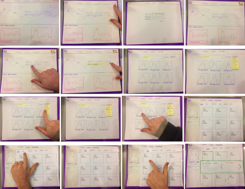 Our next step was creating a paper prototype. We sketched out all the primary user flows through the site, and tested the paper prototype with users to gain general feedback on the interaction patterns.